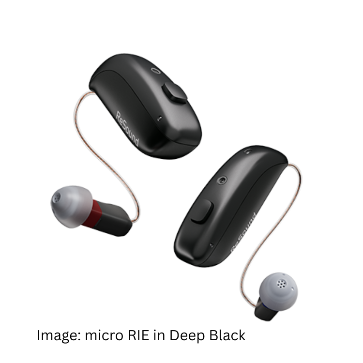 The microRIE style is among the smallest and most discreet options available, combining comfort and performance in a sleek design. The Vivia 9 range also includes the RIE (61) with a size 312 disposable battery for those who prefer non-rechargeable options, and the RIE (62) with a size 13 battery and built-in telecoil for use in hearing-loop environments.